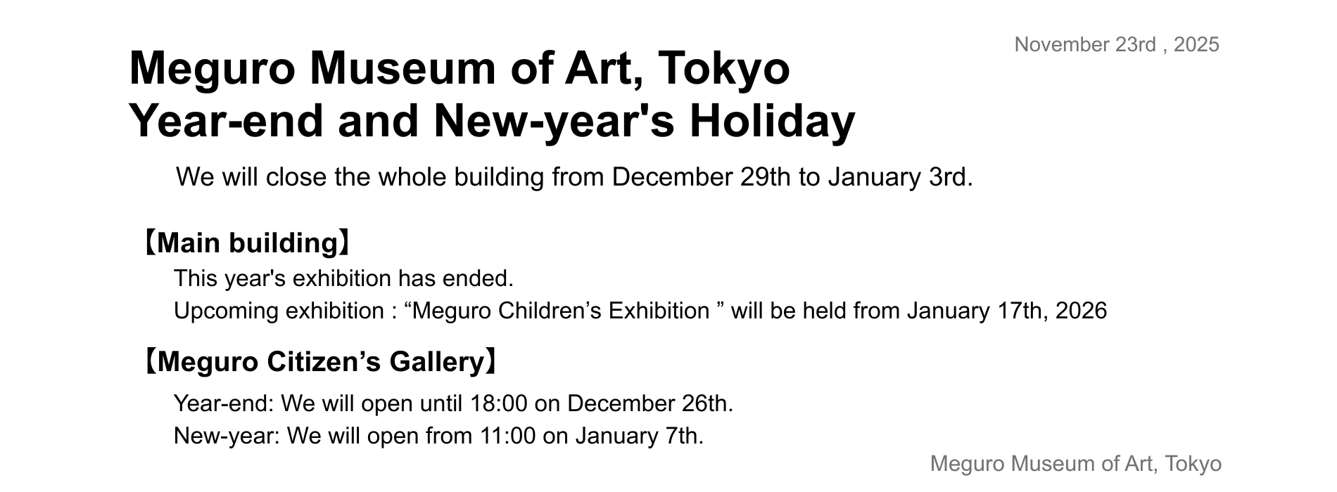 - 10:00〜18:00(The Museum entrance closes at 17:30)